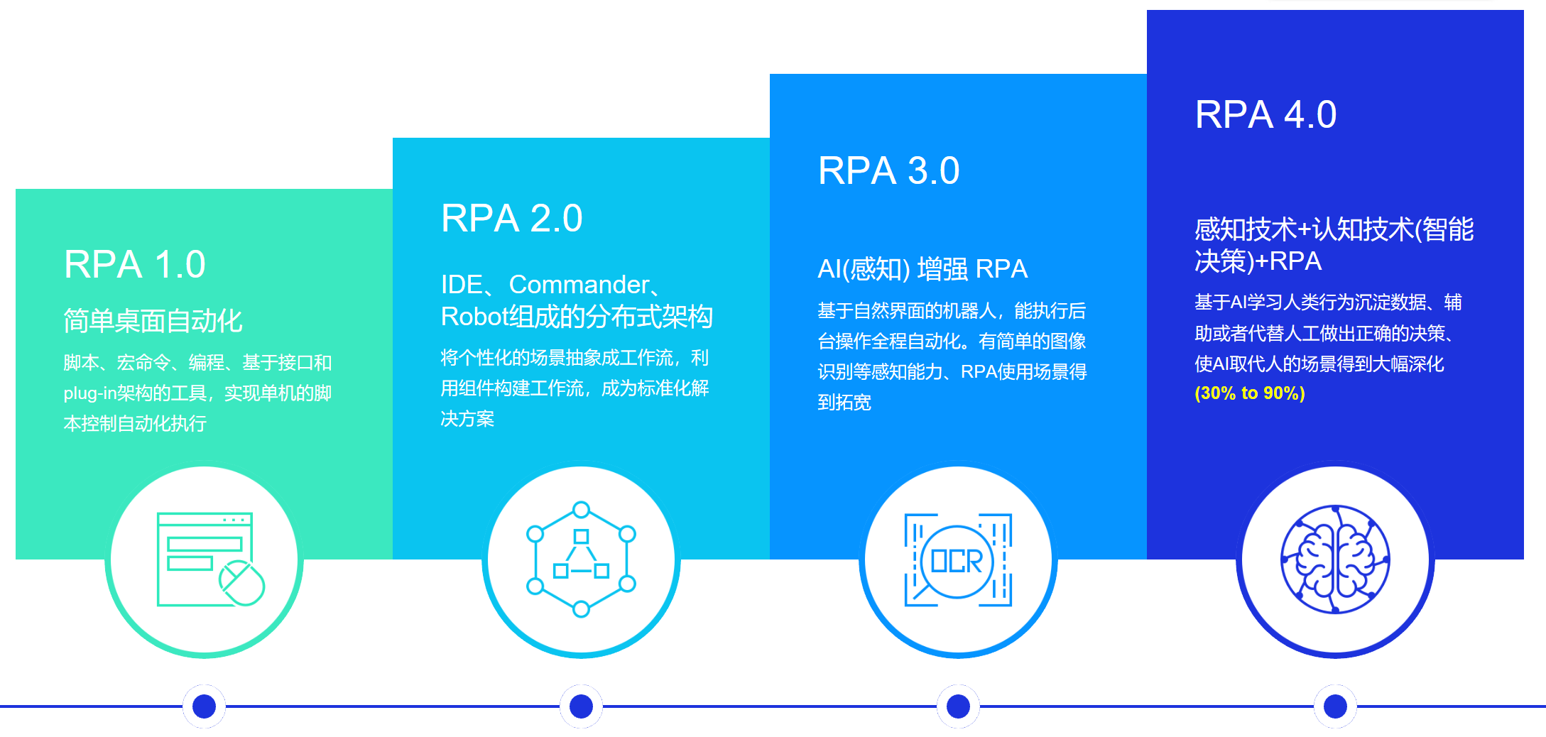 3.RPA与AI的结合:RPA与AI的结合使得自动化流程具备了认知和决策能力。通过机器学习(ML)和自然语言处理(NLP)等AI技术,RPA可以理解和处理更加复杂的任务和数据,实现更高层次的自动化。